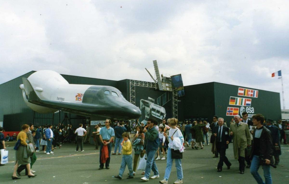 (航展上的赫尔墨斯航天飞机,可以看到欧洲多国联合的国旗标志)